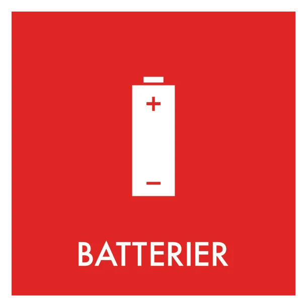 Skiltet er ikke kun en påmindelse om at beskytte vores miljø; det er også en vejledning der hjælper med at forhindre forurening og bevare naturressourcerne ved at sikre, at batterierne ikke ender i den almindelige affaldsstrøm.
