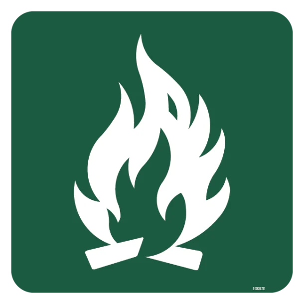 - Universel kommunikation: Med sin klare grafik og tydelige budskab sørger skiltet for, at alle besøgende forstår, hvordan man opfører sig ved bålpladsen – også dem, der ikke er bekendte med lokale regler.