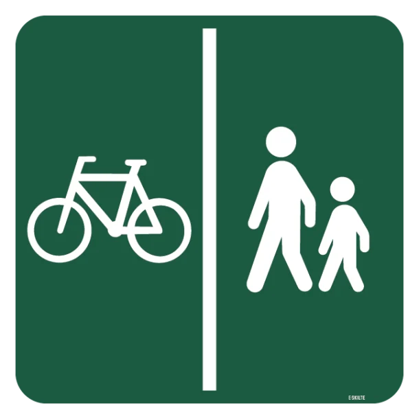 Hver gang vi træder ud i naturen, søger vi ro og fred. Med dette intuitive skilt sikrer du, at både cyklister og fodgængere ved præcis, hvor de skal færdes. Skiltets simple og forståelige design kommunikerer tydeligt områdernes anvendelse, hvilket reducerer risikoen for sammenstød og skaber flydende trafik uden stress.