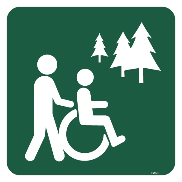 Ved at installere dette skilt, viser din organisation eller kommune et klart engagement i socialt ansvar. Det er et visuelt løfte om, at I arbejder for at sikre, at naturens skønhed og ro kan nydes af alle, uanset fysisk formåen.
