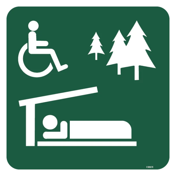 Tøv ikke med at investere i Handicapvenlig overnatningsplads med shelter skilt og gør dit overnatningsområde mere indbydende og tilgængeligt for alle naturelskere. Bestil dit skilt i dag og tag et vigtigt skridt mod en mere rummelig og imødekommende naturoplevelse for alle dine gæster.
