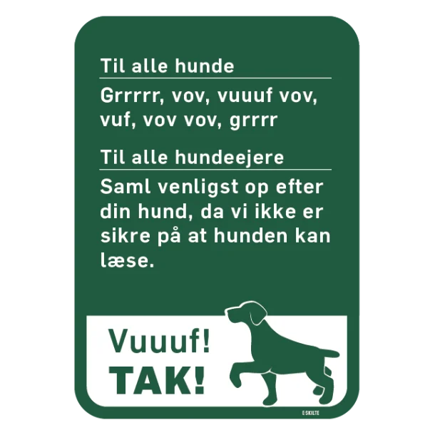 Effektiv kommunikation med vores “Saml op efter din hund” skilt