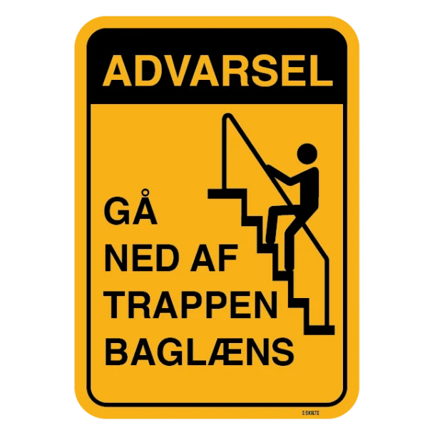 Øg sikkerheden med et “Advarsel gå ned af trappen baglæns” skilt
