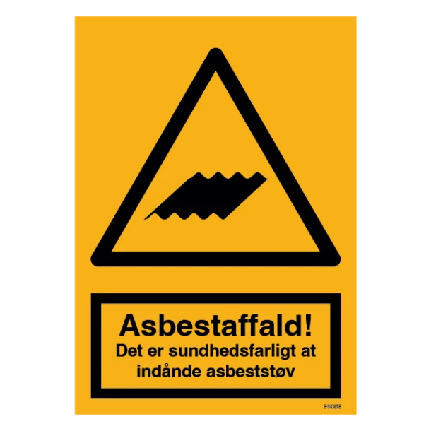Designet af skiltet garanterer forståelse af budskabet og skaber nødvendig synlighed. Den klare sorte tekst genkendelige gul baggrundsfarve gør det øjeblikkeligt klart for alle, at her advarer man om asbestaffald i området. Dette er både vigtigt for medarbejdernes sikkerhed, o de mange besøgende og forbipasserende, som kan være uvidende om risici og farer, der er forbundet med materialer der indeholder asbest.