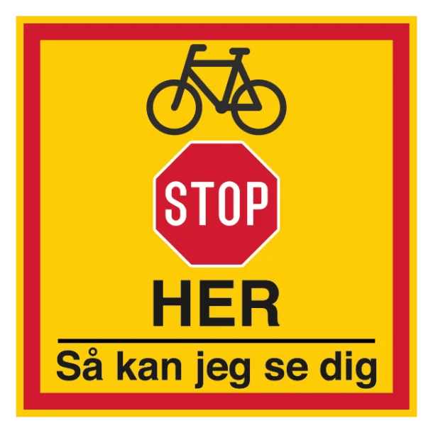 Synlighed er nøgleordet, når det kommer til sikkerhed, og vores skilt hjælper med at placere cyklister, hvor de er mest synlige for bilister. Ved at anbringe skiltet i kritiske punkter, bliver cyklisterne opmærksomme på det sikreste sted at stoppe, så bilisterne har den bedste chance for at se dem.