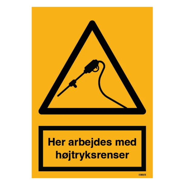 Vores skilt er ideelt for alle typer af virksomheder og arbejdssteder, der anvender højtryksrensere. Det er perfekt til byggepladser, renoveringsområder, landbrugsoperationer og industrielle områder, hvor det øger sikkerheden ved at informere om de igangværende aktiviteter. Den klare tekst og grafik gør, at skiltet er synligt fra afstand og nemt at afkode for alle forbipasserende.