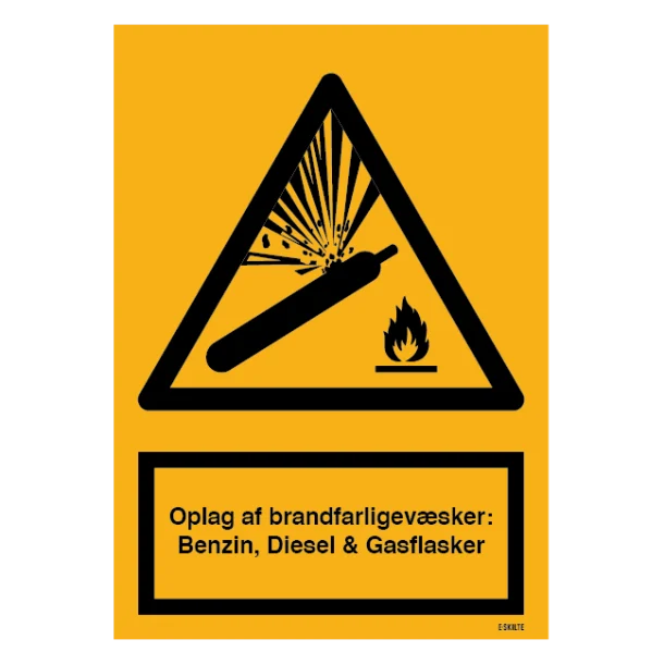 Styrk sikkerheden på din arbejdsplads og minimer risikoen for ulykker med vores “Oplag af brandfarlige væsker – Benzin, Diesel & Gasflasker skilt”. Med tydelig markering og advarsler sikrer du, at alle er opmærksomme på de farer, der er forbundet med opbevaringen af brandfarlige materialer. Vores skilt er designet til at være umuligt at overse, og dets klare budskab fungerer som en konsekvent påmindelse for alle, der færdes i nærheden af disse stoffer.