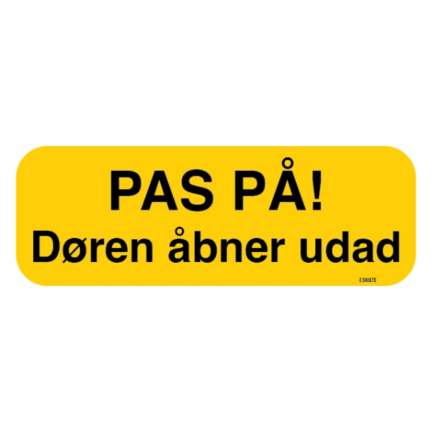 Dette skilt er meget mere end blot en sikkerhedsforanstaltning; det er en del af din ansvarlige kommunikation overfor alle, der bevæger sig på dine områder. Med et klart og tydeligt budskab sikrer du, at informationen om dørens åbningsretning forstås af enhver besøgende, uanset sprog og baggrund. Skiltet er et must-have for steder, hvor døre åbner udad i områder med fodgængertrafik, så som shoppingcentre, offentlige institutioner, restauranter, skoler og mange andre steder.