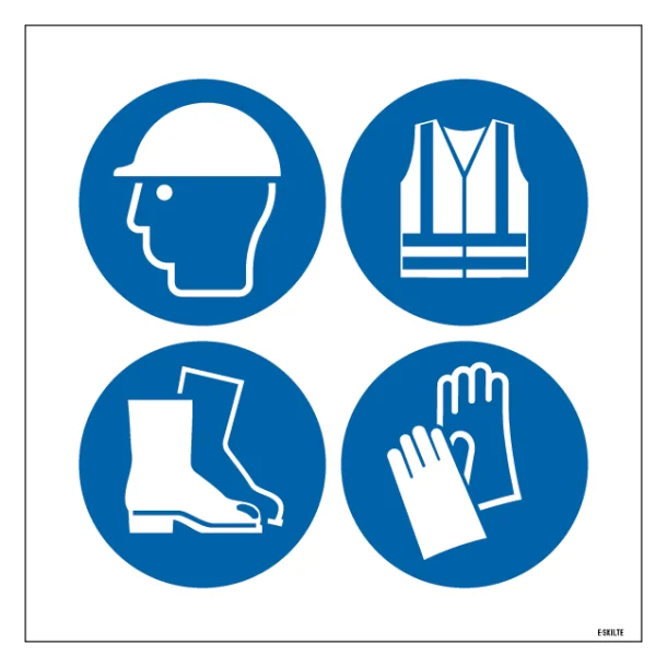 Vores skilt sikrer, at intet bliver overladt til tilfældighederne. Det klare og tydelige budskab om at iføre sig personligt sikkerhedsudstyr er umuligt at overse. Skiltet kommunikerer direkte og effektivt om nødvendigheden af at være ordentligt beskyttet, hvilket er essentielt for at minimere risiko for personskader.