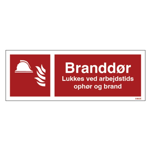 Invester i et Branddør Lukkes ved arbejdstids ophør og ved brand Brandskilt i dag og tag et skridt i retningen af øget sikkerhed på arbejdspladsen. Bestil nu og sikr dig at din virksomhed opfylder de højeste standard for brandsikkerhed med professionel, pålidelig skiltning.
