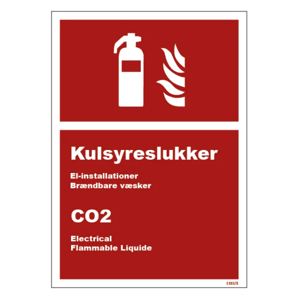 Fordele ved Brandslukker Kulsyre dansk engelsk skilt: