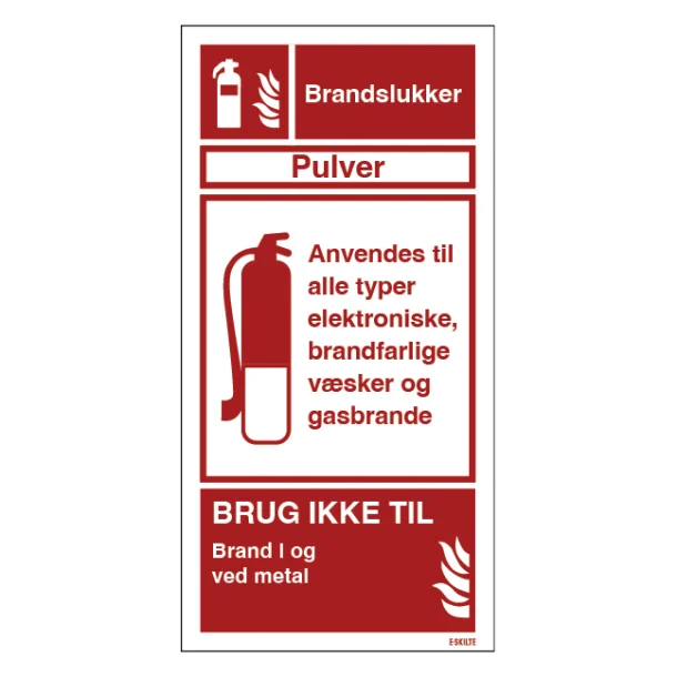 Dette brandskilt er ideelt for enhver lokation hvor pulverslukkere er installeret. Det kan være i produktionshaller, kontorer, skoler, hoteller, offentlige bygninger, og private hjem. Et synligt og lettilgængeligt skilt bidrager til sikkerhedsfølelsen og viser, at du tager brandforebyggelse alvorligt.