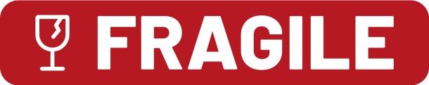 Gør opmærksom på skrøbelige genstande med et tydeligt “Fragile skilt med glas Rød”