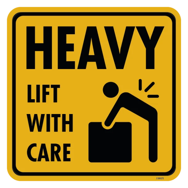 Dette skilt hjælper med at skabe en kultur af ansvarlighed og opmærksomhed omkring håndtering af tunge genstande. Det understøtter en sikker arbejdsatmosfære og hjælper med at minde alle på stedet om at løfte korrekt og omhyggeligt.