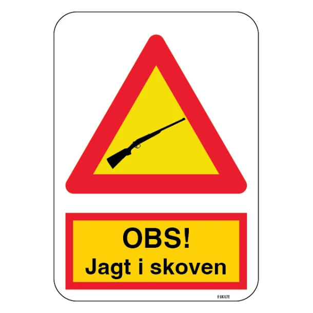OBS! Jagt i skoven (gul) skilt