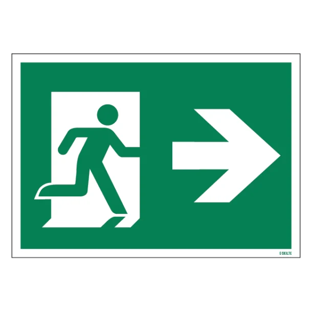 Når sikkerhed er en topprioritet, er et tydeligt og forståeligt flugtvejsskilt uundværligt. Vores ‘Flugt vej til højre’ skilt er designet til at vejlede besøgende og personale sikkert i retning af nærmeste udgang i tilfælde af nødsituationer. Det visuelle sprog er klart og universelt forståeligt, hvilket sikrer, at alle kan handle hurtigt og effektivt, når hvert sekund tæller.