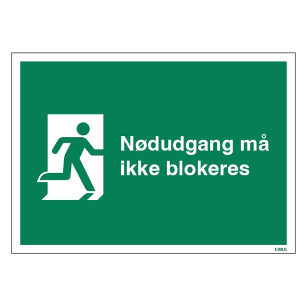 Sikr din nødudgang med kvalitetsskiltet: “Nødudgang må ikke blokeres”