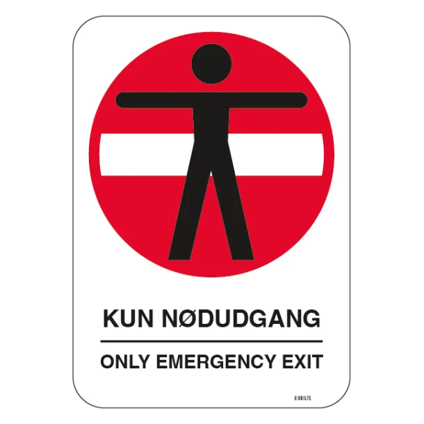 Lad ikke din virksomhed eller din bygning være dårligt forberedt i tilfælde af en nødsituation. Bestil dit “Nødudgangsskilt – Kun nødudgang, Only emergency exit” i dag og tag det første skridt mod en sikrere fremtid. Vores skilte er klar til at hjælpe dig med at guide folk ud i sikkerhed, når hvert sekund tæller.