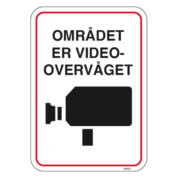 Dette skilt formår at kommunikere sit budskab effektivt og umisforståeligt. Budskabet “Området er videoovervåget” er fremhævet med store bogstaver, og sammen med en illustrativ grafik af et overvågningskamera, efterlader det ingen tvivl om skiltets intention. Den kraftige røde ramme, der omgiver skiltet, garanterer øget opmærksomhed, hvilket er afgørende for at sikre, at budskabet bliver bemærket.