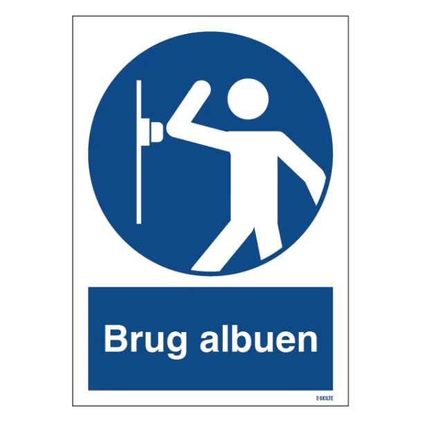 Den fleksible anvendelse gør “Brug albuen” skiltet ideel til et bredt spektrum af steder: offentlige institutioner, sundhedssektoren, restauranter, skoler, supermarkeder, kontorer og selv i private hjem. Overalt hvor interaktion med fælles overflader er en del af dagligdagen, bør dette skilt tages i brug for at fremme en sikker adfærdsnorm.