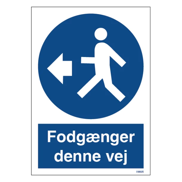 Dette skilt kommunikerer tydeligt til fodgængere, at de skal følge en bestemt rute. Dette er især vigtigt i områder, hvor der er risiko for konflikt mellem fodgængere og køretøjer. Gør passagen sikrere for alle med dette tydelige og letforståelige skilt.
