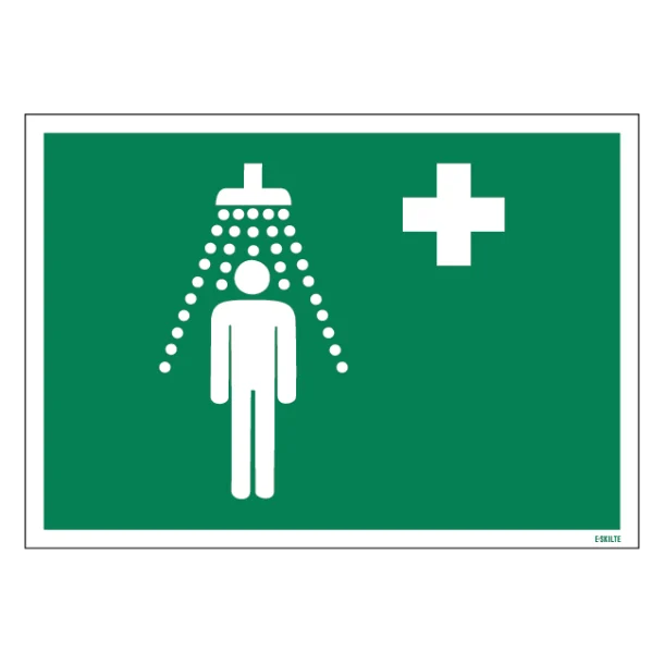 Vores førstehjælps brus skilt er designet til at fange øjet hurtigt. Med en universelt genkendelig ikonografi og klare instruktioner viser skiltet tydeligt placeringen af brusefaciliteter, hvilket er afgørende for en hurtig reaktion i nødsituationer. Dette skilt kommunikerer vigtig information effektivt, så brugeren ikke er i tvivl om, hvor hjælpen kan findes.