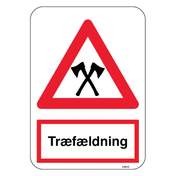 Advarsel træfældning økser skilt