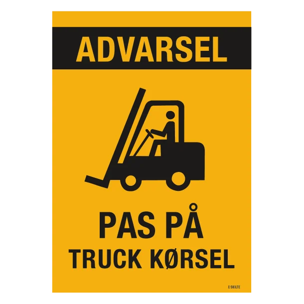 Dette sikkerhedsskilt passer i en bred vifte af miljøer. Fra lagerhaller og produktionsfaciliteter til byggepladser, er skiltet et uundværligt værktøj til at sikre, at farerne ved truckkørsel er tydeligt kommunikeret til alle på stedet.