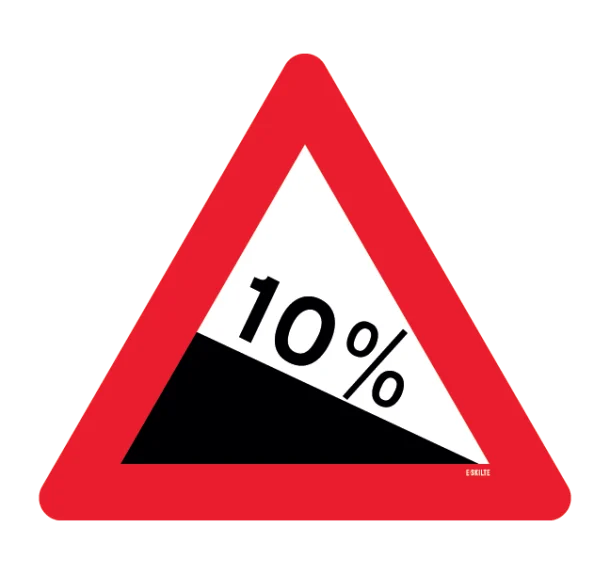 A46,1 anvendes på strækninger, hvor der er en stejl nedkørsel længere fremme. Tavlen angiver den maksimale hældning på strækningen.