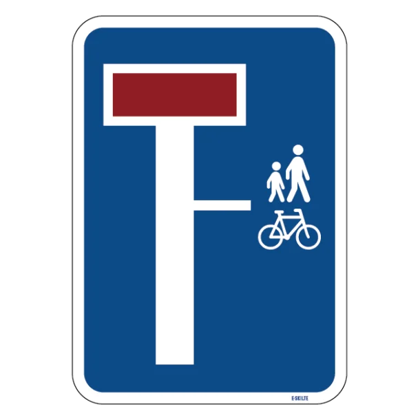 Vil du sikre effektiv og tryg vejledning for både bilister og cyklister på dine veje? Så er E18,1,2 – Blind vej-skiltet den ideelle løsning for dig. Dette skilt er designet til at gøre opmærksom på, at vejstrækningen slutter for motorkøretøjer, men indikerer samtidig elegant, at cyklister stadig kan fortsætte deres rejse til højre via en dedikeret sti. Med dets klare budskab og iøjnefaldende design tjener skiltet som en essentiel vejleder i bybilledet såvel som på landlige, mindre befærdede veje.