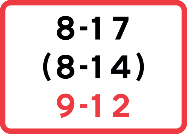 Ved en trekant er størrelsen defineret ud fra kantlængden før afrundingen. Ved et rundt skilt er størrelsen defineret ud fra diameteren. Ved et firkantet skilt er størrelsen defineret ud fra bredden x højden.