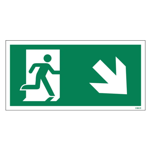 Find vej i nødsituationer med “Flugtvej til højre ned skilt ISO E002”