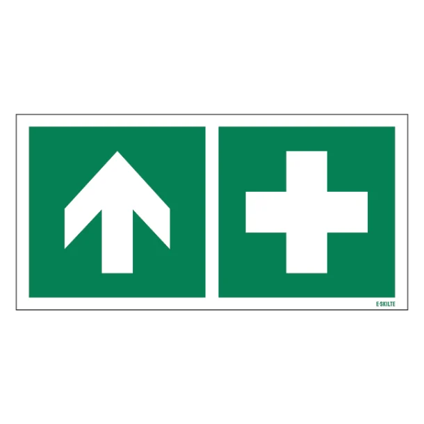 Med vores Førstehjælp op skilt sikrer du at nødvendig førstehjælp er let at finde i kritiske situationer. Piktogrammet er designet for at være intuitivt og nemt genkendeligt, således at medarbejdere, besøgende og kunder hurtigt kan finde henvisningen til førstehjælpsudstyr når hvert sekund tæller.
