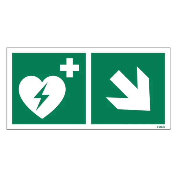 I en nødsituation tæller hvert sekund. Med vores højkvalitets “Hjertestarter til højre” nødskilt kan du sikre, at både medarbejdere og besøgende hurtigt kan finde hjertestarteren, når det virkelig gælder. Dette skilt er designet til at skabe maksimal synlighed og forståelse ved hjælp af det internationalt anerkendte ISO 7010-piktogram “E010 Automated external heart defibrillator” fra kategorien E – Flugtvejsskilte / Henvisningsskilte.
