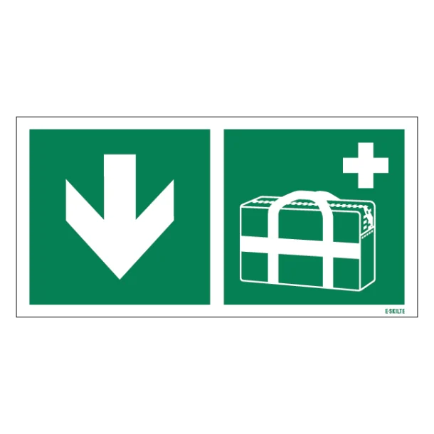 Dette nødskilt tager udgangspunkt i ISO 7010 piktogrammet “E027 Medical grab bag” fra ISO kategorien: E – Flugtvejsskilte / Henvisningsskilte.