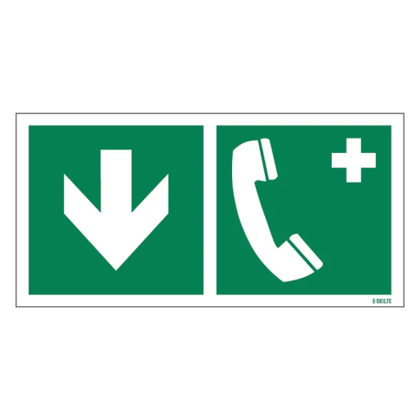 Dette nødskilt tager udgangspunkt i ISO 7010 piktogrammet “E004 Emergency telephone” fra ISO kategorien: E – Flugtvejsskilte / Henvisningsskilte.
