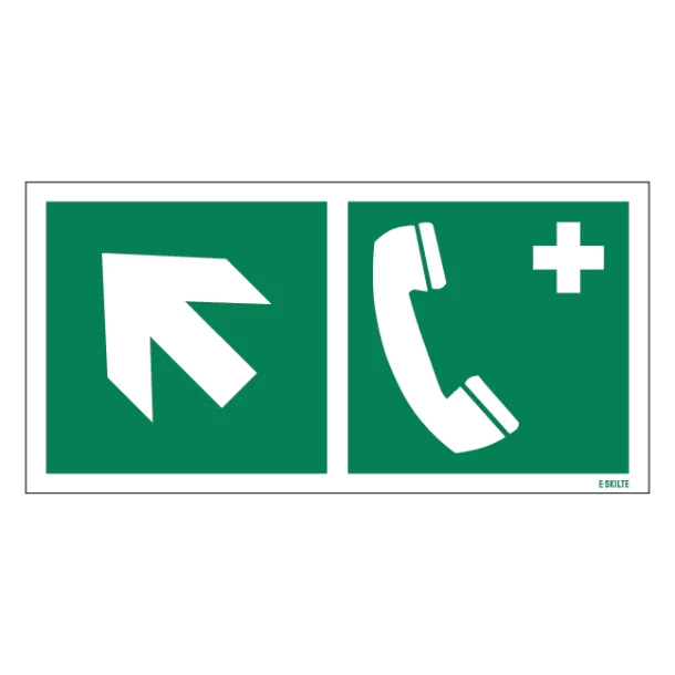 Dette nødskilt tager udgangspunkt i ISO 7010 piktogrammet “E004 Emergency telephone” fra ISO kategorien: E – Flugtvejsskilte / Henvisningsskilte.