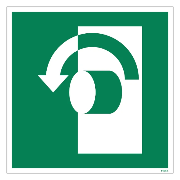 Søger du efter en tydelig visuel vejledning, der kan guide besøgende og medarbejdere sikkert i nødsituationer? Vores “Drej mod uret skilt ISO E018” er ikke bare en informationstavle; det er en vital del af dit sikkerhedssystem. Med det internationalt anerkendte symbol fra ISO 7010 kategorien ‘E – Flugtvejsskilte/Henvisningsskilte’, ved alle præcist, hvad de skal gøre for at åbne en dør i tilfælde af flugt.