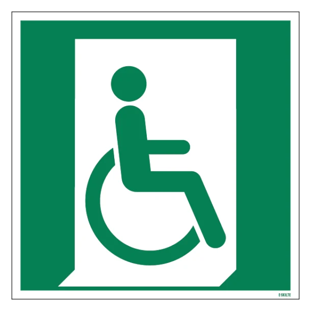 Originalt ISO 7010 navn: E030 Emergency exit for people unable to walk or with walking impairment (right)