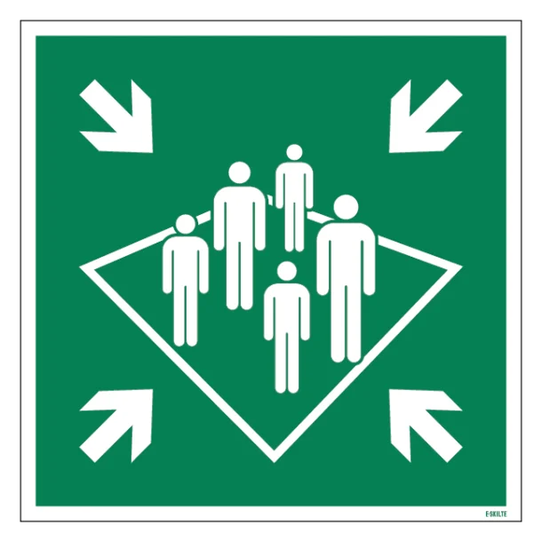 Skiltet ‘Samlestation ombord’ er en del af kategorien E – Flugtvejsskilte / Henvisningsskilte, der spiller en essentiel rolle i tilrettelæggelsen af en sikker og kontrolleret evakuering ombord. Det ikonografiske design giver øjeblikkelig genkendelighed, hvilket sikrer, at alle ved præcis, hvor de skal mødes, når alarmen lyder. Den enkle, men effektive visualization af en samling af personer signalerer klart formålet med skiltet – at lede folk mod et fællespunkt.