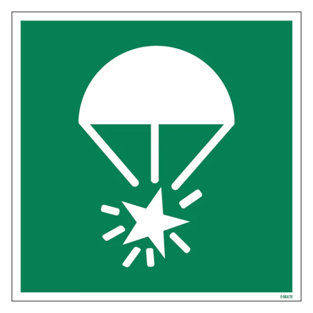 Opdag vores “Nødblus med faldskærm skilt – ISO E049”