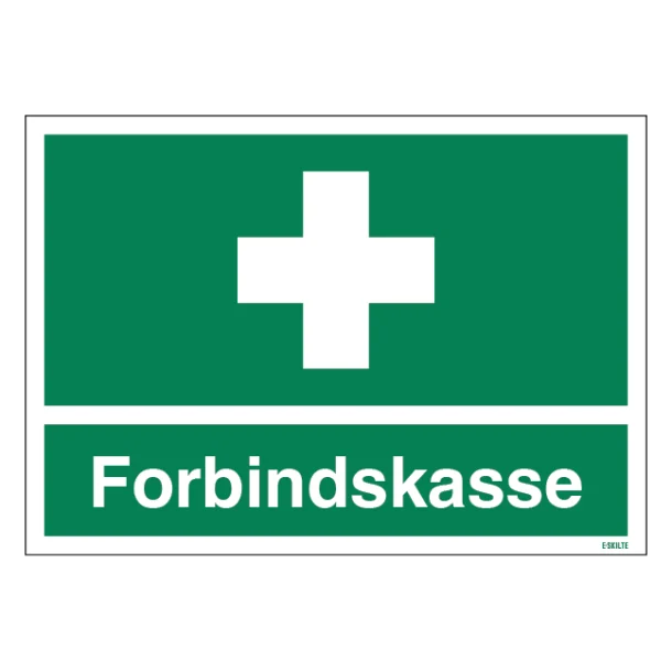 Vores forbindskasse skilte følger ISO 7010 piktogrammet “E003 First aid”, som sikrer dig, at du har den rette skiltning i henhold til internationalt anerkendte standarder. Når du bruger vores skilt, kommunikerer du klart og korrekt, hvor førstehjælp kan findes.