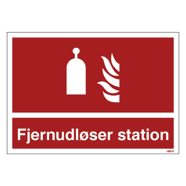 Dette brandskilt tager udgangspunkt i ISO 7010 piktogrammet “F014 Remote release station” fra ISO kategorien: F – Brandskilte.
