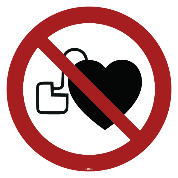 Mit navn er det tydelige symbol forbundet med ISO 7010 P007 – et universelt design, der fortæller alle, at adgangen er forbudt for personer med hjerteimplantater. Farvesammensætningen og det grafiske layout er umiskendeligt og nemt at aflæse, selv på afstand, hvilket sikrer, at budskabet når frem til alle relevante personer.