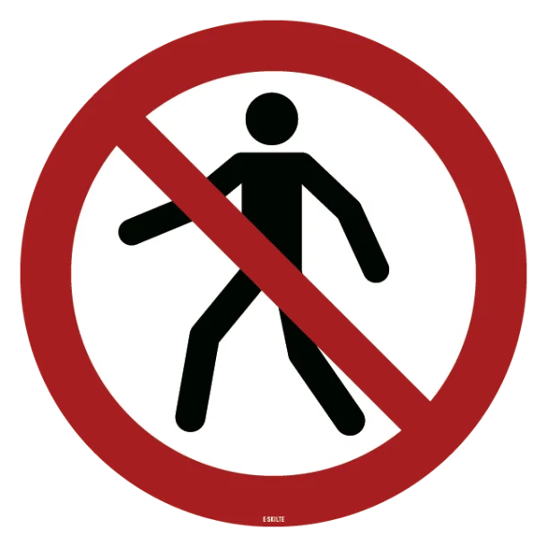 Med den officielle ISO betegnelse P004 er dette forbudsskilt straks genkendeligt, takket være den velkendte røde cirkel med diagonal streg – et globalt anerkendt symbol for “ingen gennemgang”. Det sikrer, at både besøgende og medarbejdere omgående forstår, at adgangen er forbudt.