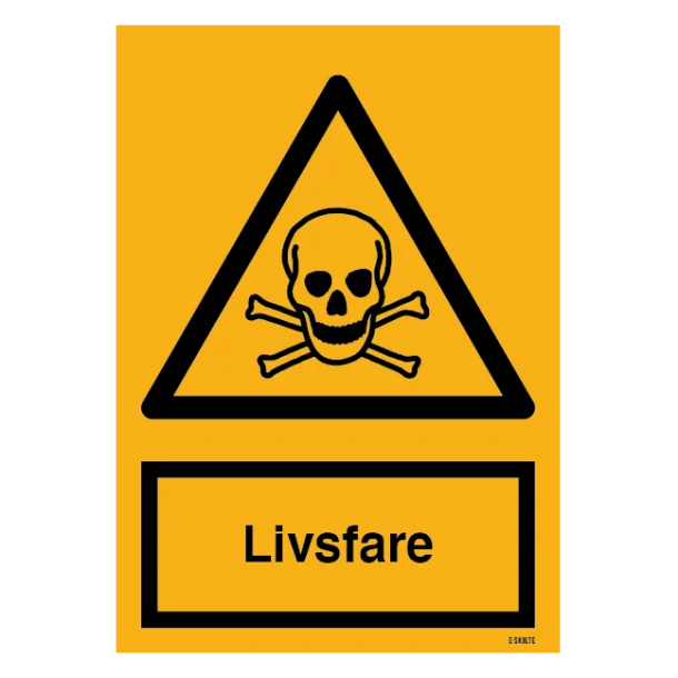 Med et skarpt fokus på sikkerhed og forebyggelse af uheld, udbyder vi det vitale Livsfare skilt, der sender et klart signal om fare, symboliseret ved det internationalt anerkendte ISO 7010 piktogrammet “W016 Toxic material”. Skab en sikkerhedsbevidst atmosfære og beskyt dine ansatte, kunder og gæster med dette uundværlige advarselsskilte, som formidler en kritisk besked om tilstedeværelse af giftige materialer eller anden alvorlig fare.
