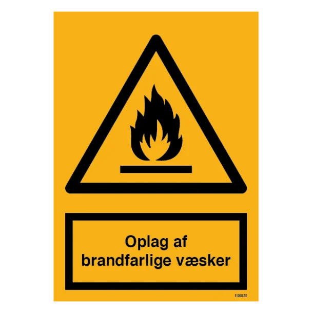 Hvis du leder efter en måde at sikre både personale og gæster mod potentiel brandfare, så er vores Oplag af brandfarlige væsker skilt det ideelle valg. Dette vigtige skilt er designet til at gøre opmærksom på risikoen ved oplag af brandfarlige materialer. Skiltet anvender det internationalt anerkendte ISO 7010 piktogram “W021 Risk of fire/Flammable materials”, der er en del af advarselsskilte-kategorien.