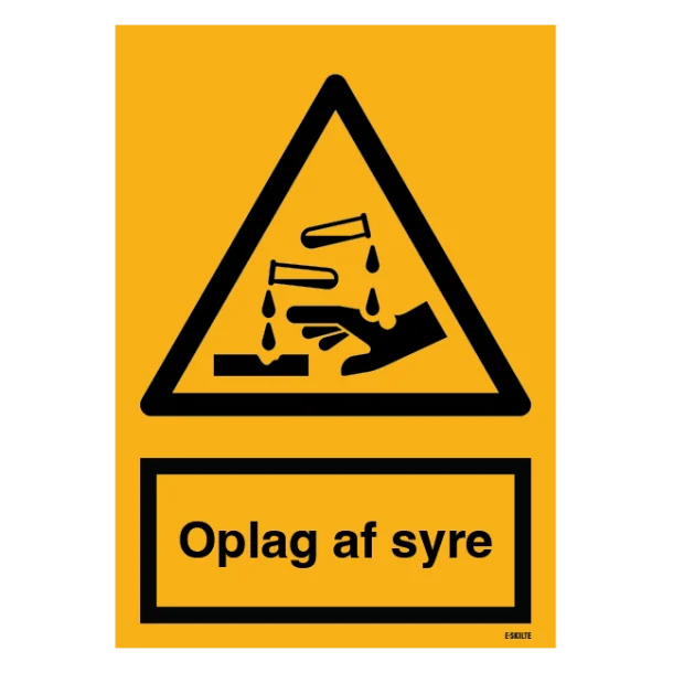 Indsæt vores Oplag af syre advarselsskilt i din arbejdsplads, og bidrag til et sikkert arbejdsmiljø hvor medarbejdere og besøgende er informeret og beskyttet mod kemiske risici.