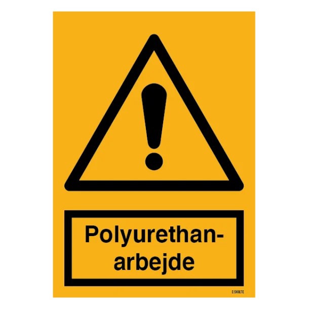 Skiltet formidler en vigtig advarsel om omhyggelighed og sikkerhedsprocedurer i områder, hvor der arbejdes med polyurethan. Dets klare budskab bidrager til at opretholde et sikkert arbejdsmiljø ved at minde alle på stedet om at udøve forsigtighed og følge de relevante sikkerhedsinstruktioner.