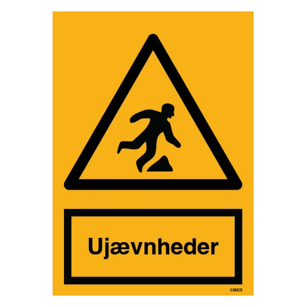 Søger du efter en effektiv løsning til at sikre dine besøgende og medarbejdere mod potentielle farer? Vores “Ujævnheder Skilt” er designet til netop at advare folk om mulige ujævnheder på gulve eller andre obstakler, som kan lede til uheld. Vores skilt er inspireret af det internationalt anerkendte ISO 7010 piktogram “W007 Floor level obstacle” og formidler en klar besked uanset sprog og baggrund hos tilskueren.